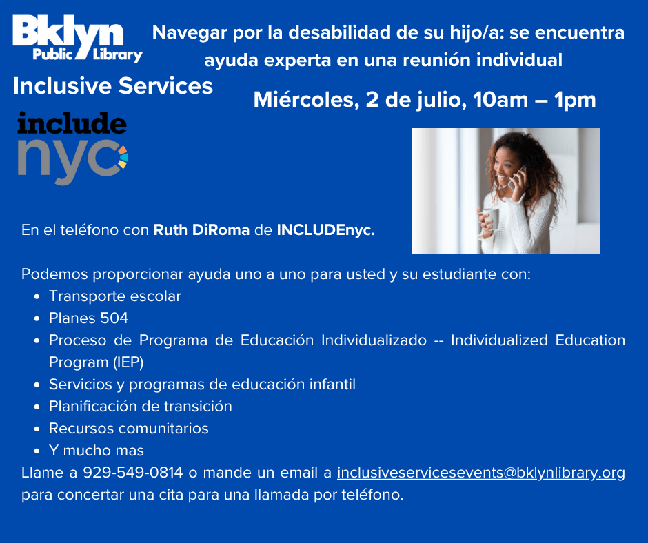 Brooklyn Public Library’s Navigating Your Child’s Disability: One-to-One Assistance Is Here!