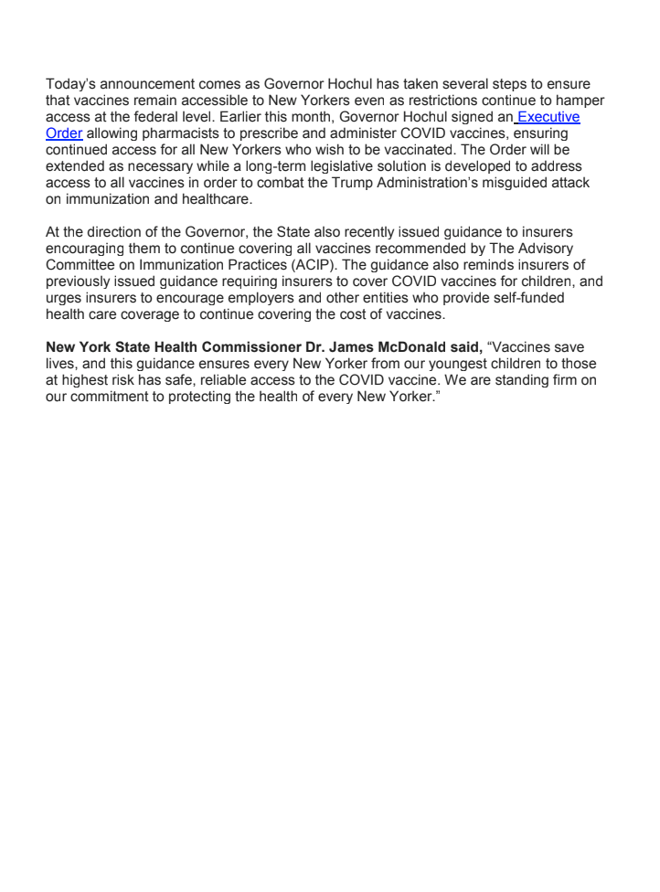 Governor Hochul Issues COVID-19 Vaccine Guidance