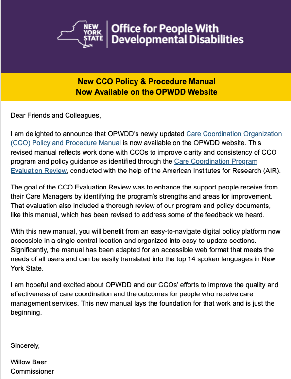 Click here to access and view the CCO Policy & Procedure Manual